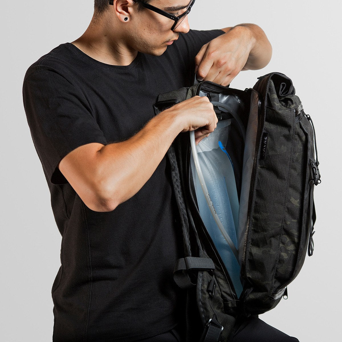 Compatible with most hydration reservoirs up to 3 liters including Camelbak, Hydrapak, Platypus, and Osprey/Nalgene.