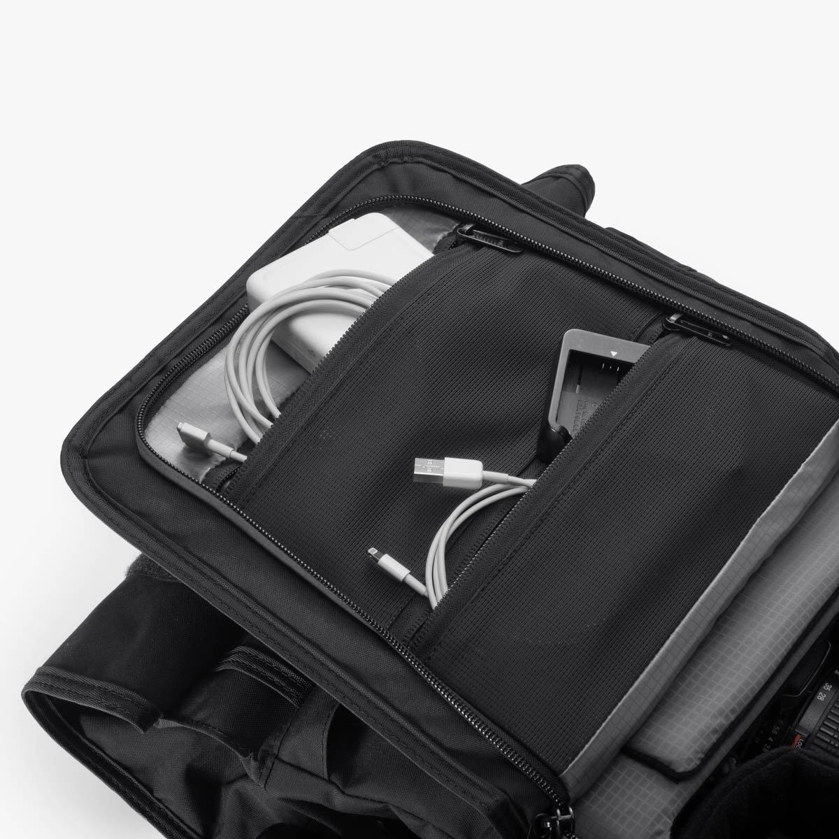 2 external quick-access pockets for chargers, keys, phone, wallet, lens caps, memory cards and other accessories