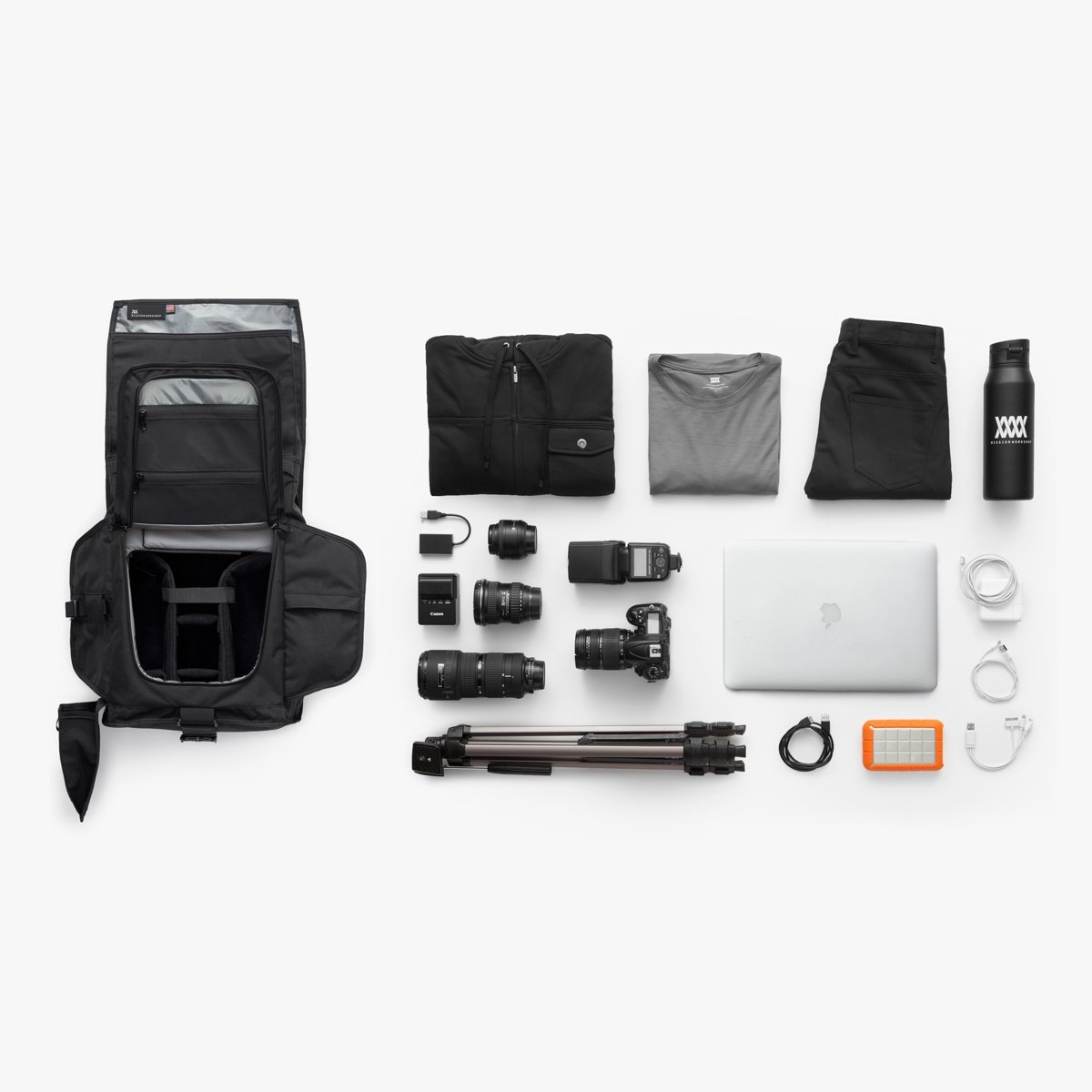 2 external quick-access pockets for chargers, keys, phone, wallet, lens caps, memory cards and other accessories