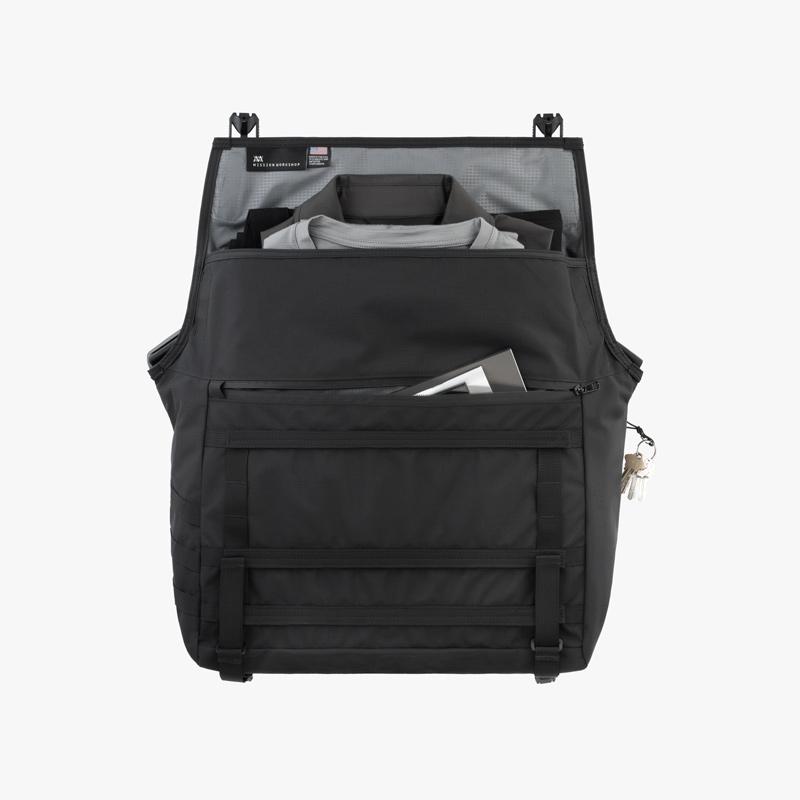 3 Arkiv® rails on the front of the bag for easy addition of Mission Workshop Arkiv® accessories