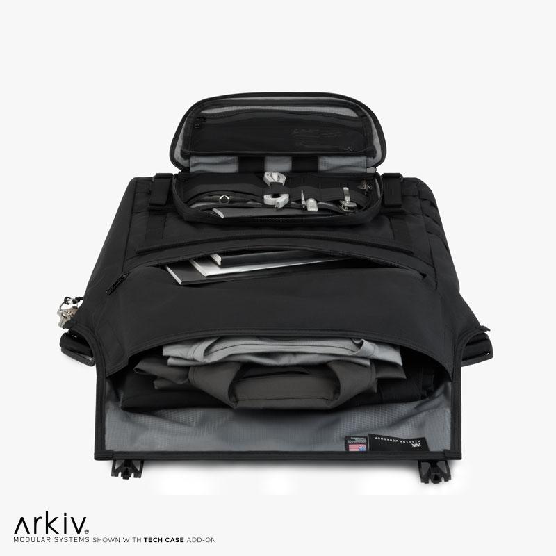 Recommended Arkiv® accessories: Tech Case, Vertical Zippered Pocket, Utility Pocket, Horizontal Zip, and Tool Pocket