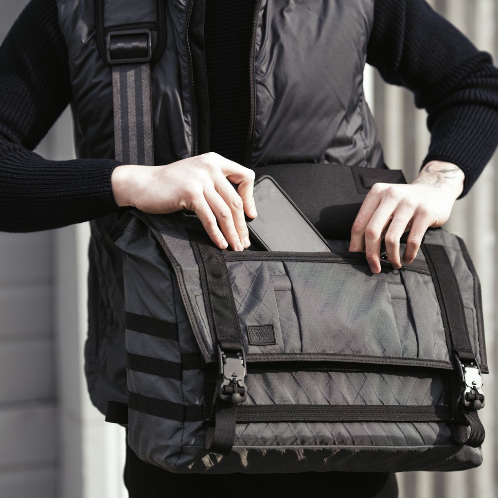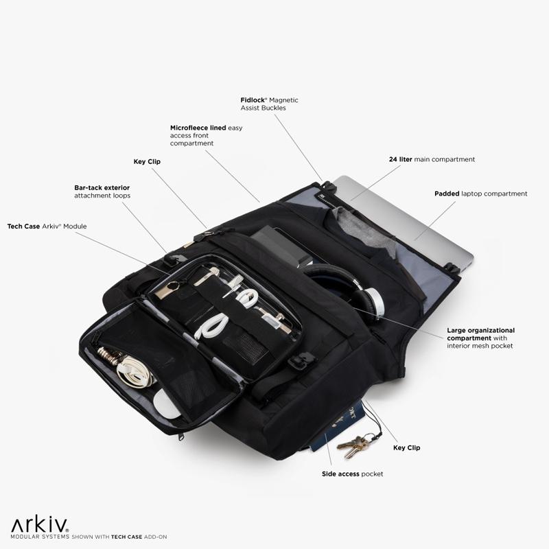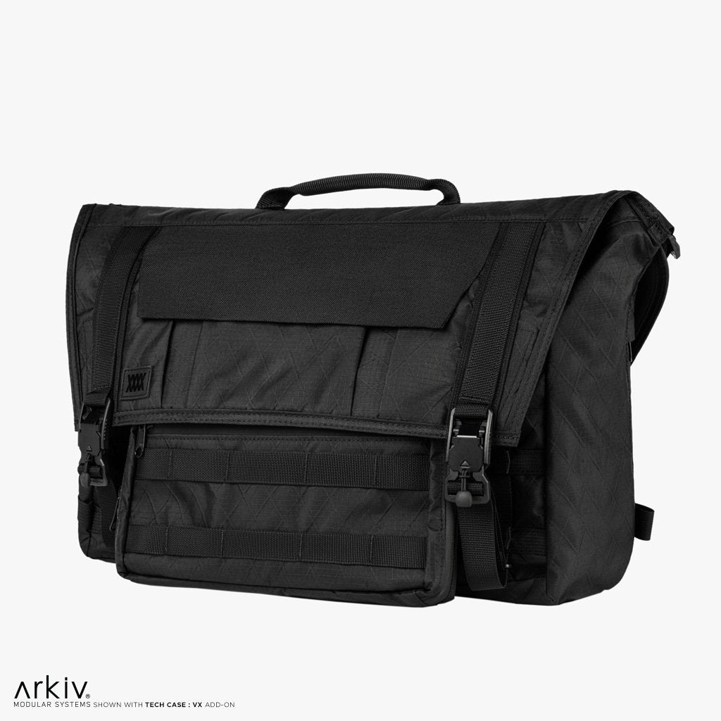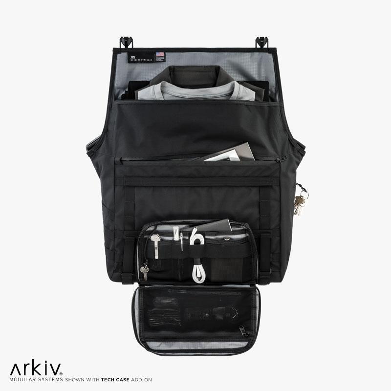 3 Arkiv® rails on the front of the bag for easy addition of Mission Workshop Arkiv® accessories