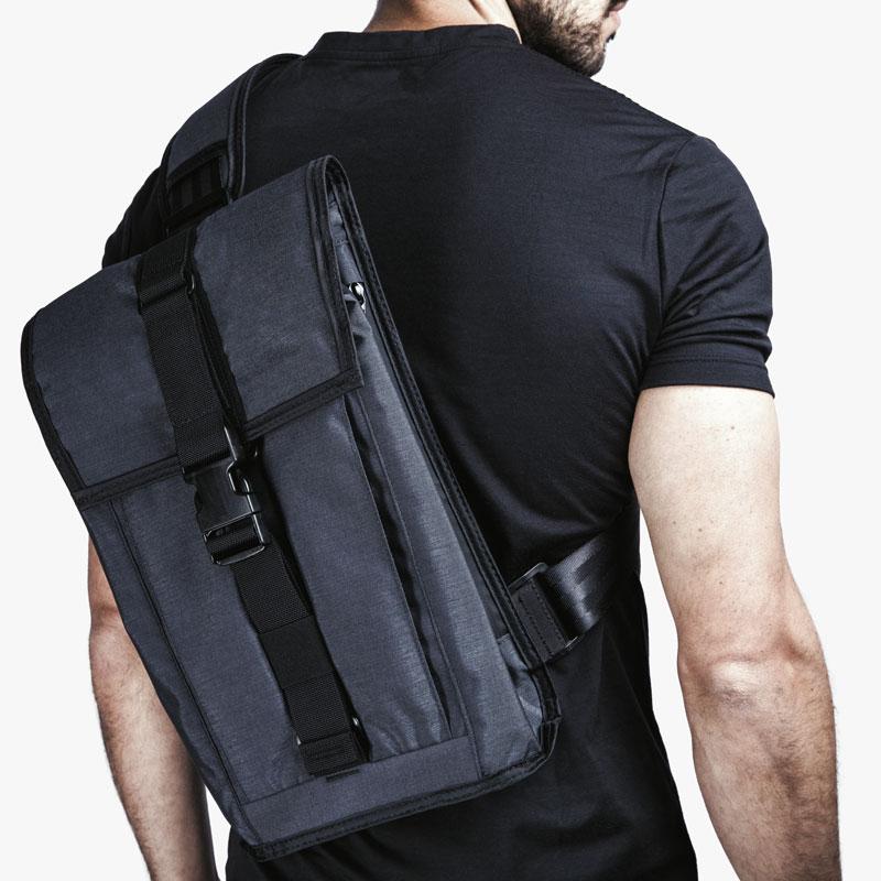 Removable main strap system allows conversion into a small daypack with optional backpack harness